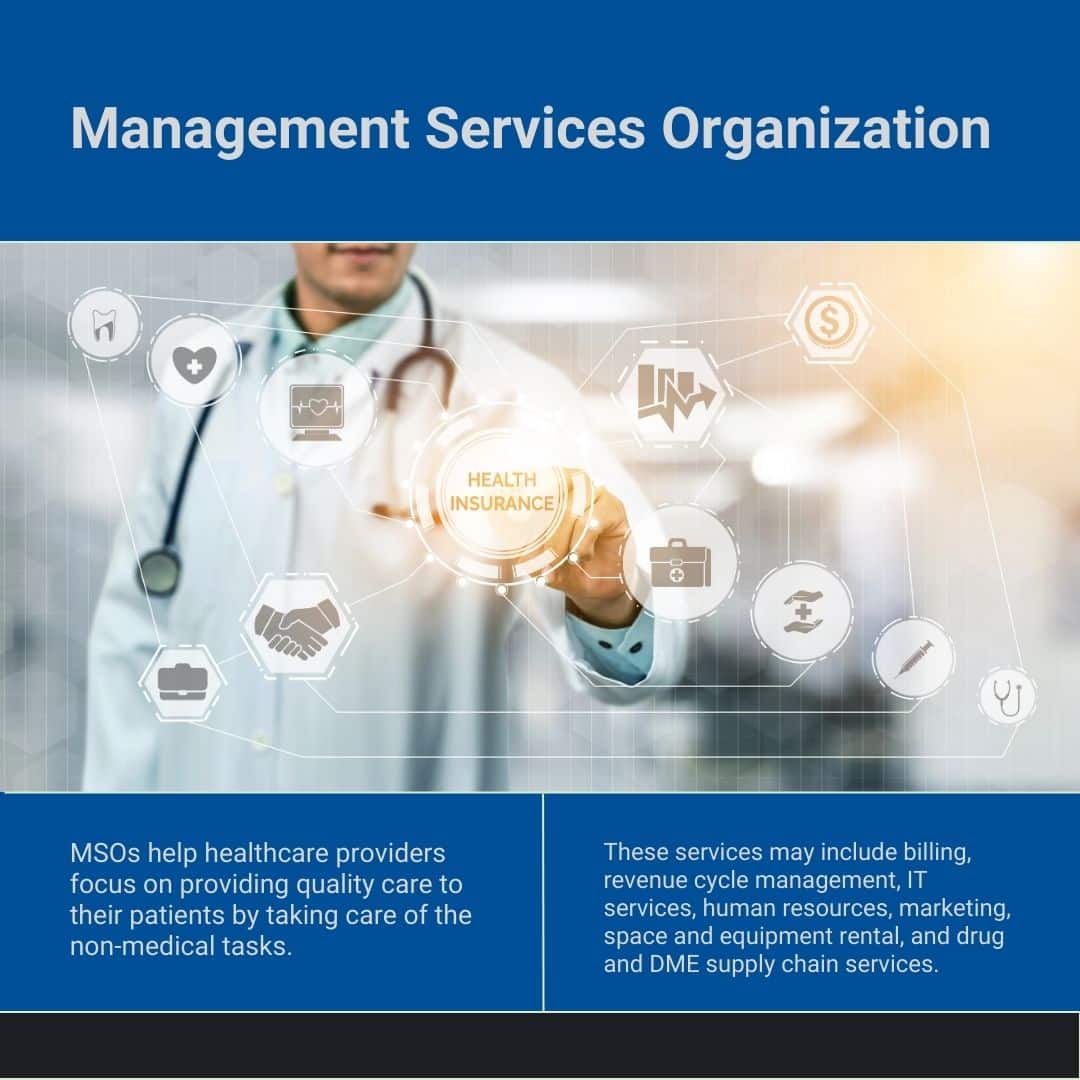 MSOs, or management service organizations, legally provide non-clinical services to medical practices and healthcare providers. These services may include billing, revenue cycle management, IT services, human resources, marketing, space and equipment rental, and drug and DME supply chain services.
